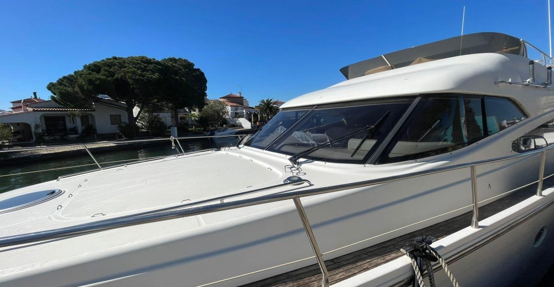 Details: Very neat boat. Distributed in a living room, kitchen equipped with refrigerator, ice machine, ceramic hob, dishwasher… Three cabins and two bathrooms.
